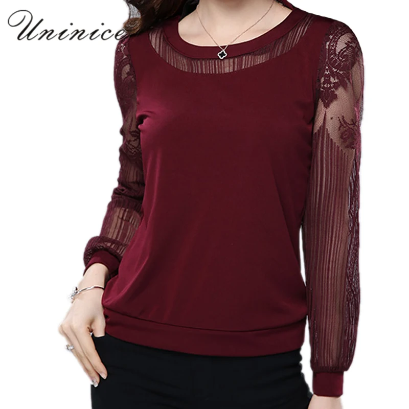 Lace Blouse Shirt Women Red/Black Plus Size Casual Chiffon Blouse Women's Clothing Loose Long Sleeve Women Blouse Bottoming Hot